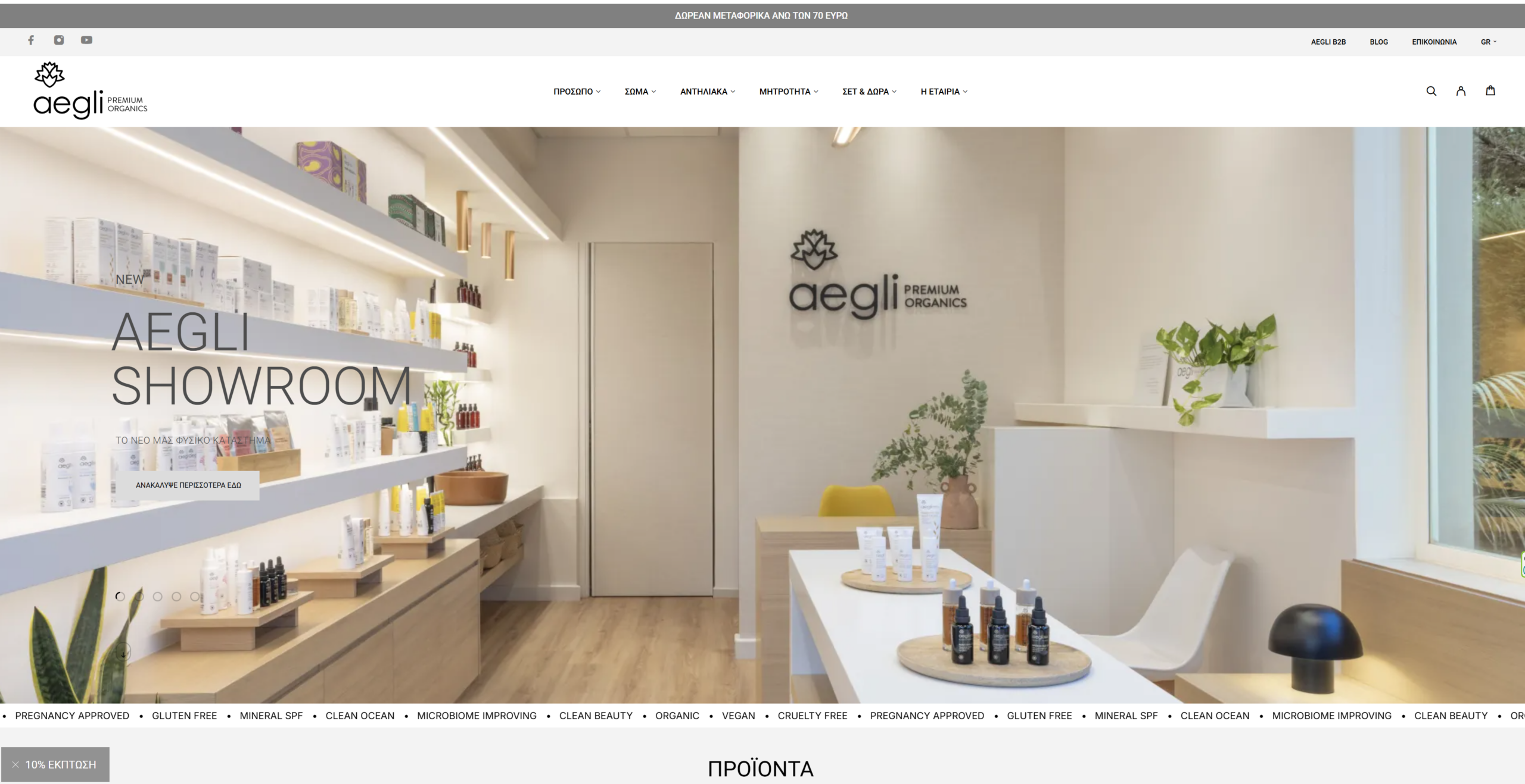 Aegli Premium Organics is a Greek clean beauty brand specializing in vegan, cruelty-free skincare. We developed a modern e-commerce website designed to reflect the brand’s natural philosophy while optimizing user experience, product discovery, and online sales. The new website combines clean design, clear navigation, and performance-focused structure for a seamless digital shopping experience.